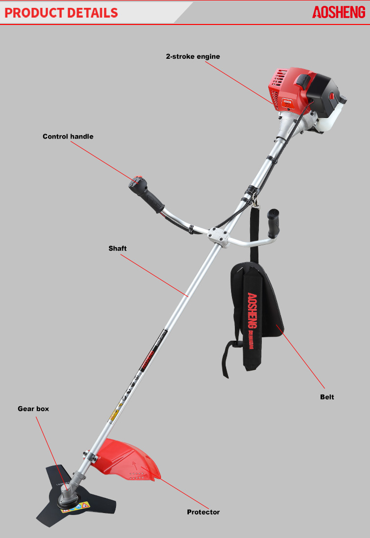 Profesjonalny silnik, moc mocy. niskie zużycie paliwa, łatwy rozruch. Obrót o 360° W części biegunowej zastosowano osłonę przepustnicy. Dźwignia sterująca może obracać się o 180°, aby zmni...