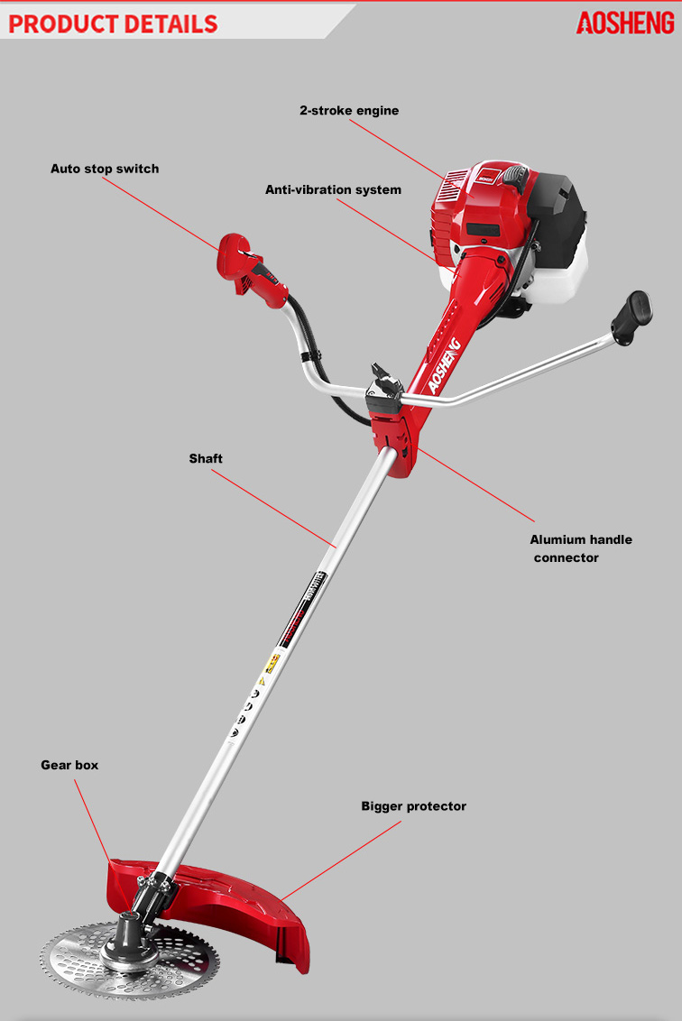 Profesjonalny silnik, moc mocy. niskie zużycie paliwa, łatwy rozruch. Obrót o 360° W części biegunowej zastosowano osłonę przepustnicy. Dźwignia sterująca może obracać się o 180°, aby zmni...