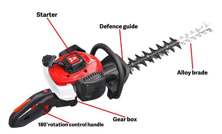 Profesjonalny silnik, moc mocy. niskie zużycie paliwa, łatwy rozruch. Obrót o 360° W części biegunowej zastosowano osłonę przepustnicy. Dźwignia sterująca może obracać się o 180°, aby zmni...