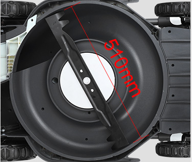 | | 06ROZMIAR POKŁADU 20- cale (510 mm) Wydajność cięcia: skoś więcej trawy w krótszym czasie |