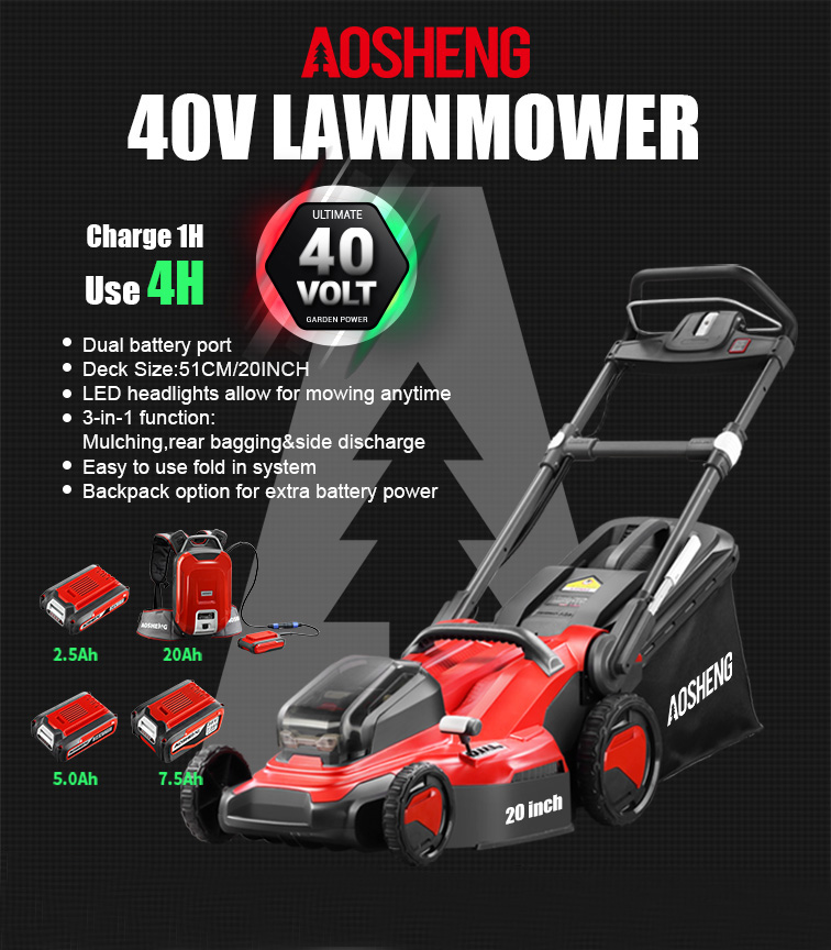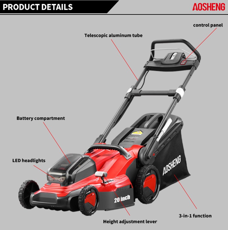 Dom / Produkty / Narzędzia ogrodnicze z baterią litową / Kosiarka / A40GC20B01 Bezprzewodowa kosiarka do trawy 40 V, 20 cali, z akumulatorem litowym